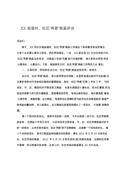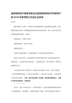 县级领导班子换届考察会议暨县级领导班子和领导干部2020年度考核工作会议主持词同志们:按照市委统一部署,今天我们召开县级领导班子换届考察会议推荐。我们很荣幸地再次迎来了市委换届考察组全体同志到会指导。首先,我向大家介绍市委换届考察组成员,他们是:考察组组长:市委XX同志。考察组副组长:市委XX同志。考察组成员有:...让我们以热烈的掌声,对换届考察组一行的到来表示热烈欢迎!参加今天会议的有:县级领导班子成员和法检“两长”以及其他县级干部,县委各部门、县直各单位主要负责人,乡镇党政正职,部分“两代表一委员”和基层群众代表。今天的会议分两个阶段进行。现在进行会议的第一阶段,共有三项议程,一是请市委...