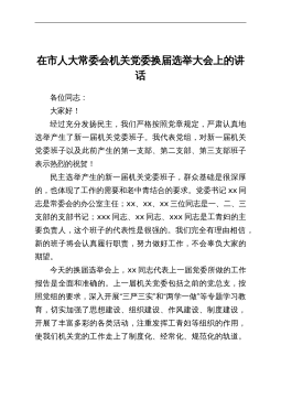 在全省市县乡人大换届选举工作总结暨人事代表工作视频会议上的讲话去年以来,全省各级人大在省委及各级党委的坚强领导下,深入贯彻习近平总书记关于坚持和完善人民代表大会制度的重要思想,积极践行全过程人民民主的重大理念,在换届选举、人事代表等方面做了大量工作,取得了良好效果,创造了宝贵经验。一是始终坚持把党的全面领导作为确保换届选举工作圆满成功的根本保证。全省各地严格按照党中央、全国人大常委会及省委的统一部署,落细落实政治责任、法律责任和工作责任,扎实做好我省市县乡三级人大首次同步换届工作,始终把牢选举工作的正确政治方向。各级党委把换届选举列入重要议事日程,充分发挥总揽全局、协调各方的领导作用,成立换届...