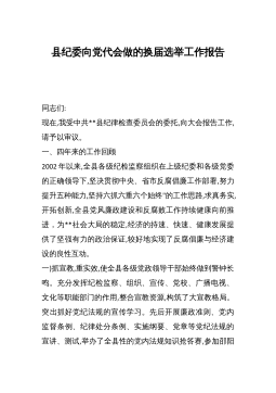 县纪委向党代会做的换届选举工作报告同志们:现在,我受中共**县纪律检查委员会的委托,向大会报告工作,请予以审议。一、四年来的工作回顾2002年以来,全县各级纪检监察组织在上级纪委和各级党委的正确领导下,坚决贯彻中央、省市反腐倡廉工作部署,努力提升五种能力,坚持六抓六重六个始终"的工作思路,求真务实,开拓创新,全县党风廉政建设和反腐败工作持续健康向前推进,为**社会大局的稳定,经济的持速、快速、健康发展提供了坚强有力的政治保证,较好地实现了反腐倡廉与经济建设的良性互动。一)抓宣教,重实效,使全县各级党政领导干部始终做到警钟长鸣。充分发挥纪检监察、组织、宣传、党校、广播电视、文化等职能部门的作用,...