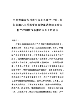 中共湖南省永州市宁远县县委书记刘卫华:在县第九次村民委员会换届选举动员暨农村产权制度改革推进大会上的讲话