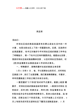 中共湖南省永州市宁远县县委书记刘卫华在县第九次村民委员会换届选举动员暨农村产权制度改革推进大会上的讲话同志们:村委会换届选举和农村产权制度改革是当前两项十分重要的工作,因此今天专门召开会议进行部署。刚才,学斌同志就村委会换届选举作了很好的工作报告。村委会换届选举严格讲应该是推进会,村支两委换届选举的动员会已经开过了,当时村两委两项选举是一起安排的,时间节点是村支部换届3月份结束,村委会换届5月份结束,工作是同步部署,任务是分段完成。这个会主要是总结村支部换届选举的经验和教训,确保村委会换届选举按程序、按要求选举到位,在选好村支部班子的基础上选出一个好的村委会班子。庚旺同志就农村产权制度改革做了...