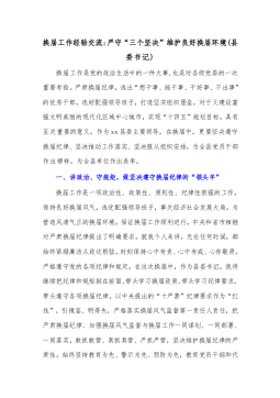 换届工作经验交流严守“三个坚决”维护良好换届环境(县委书记)