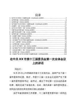 目录1.在中共XX市第十三届委员会第一次全体会议上的讲话....................................................22.在市委五届一次全会上的讲话.......................................................................................83.在市委九届一次全会上的讲话.....................................................................................144.在中国共产党XX市第十二...