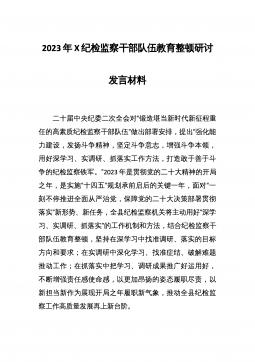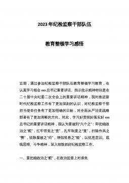 2023年党员干部开展纪检监察干部队伍教育整顿心得体会及研讨发言习近平总书记在二十届中央纪委二次全会上强调,纪检监察机关是推进全面从严治党的重要力量,使命光荣、责任重大,必须忠诚于党、勇挑重担,敢打硬仗、善于斗争,在攻坚战持久战中始终冲锋在最前面。这是纪检监察机关推进自我革命的行动指南。要以更高标准、更严纪律、更实举措强化严管严治、推进自我净化,扎实开展纪检监察干部队伍教育整顿,持之以恒强化政治建设、能力建设和廉洁建设,努力锻造忠诚干净担当、敢于善于斗争的纪检监察铁军。坚持以政治建设为统领。纪检监察机关作为党内监督和国家监察专责机关,政治属性是第一属性、根本属性,必须旗帜鲜明讲政治,强化政治引...