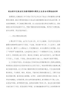 政法委书记政法队伍教育整顿专题民主生活会对照检查材料