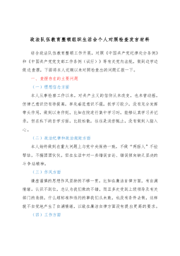 政法委书记政法队伍教育整顿专题民主生活会对照检查材料按照要求,近期我深入学习领会习近平总书记关于政法工作的重要论述和重要讲话精神,重点对照党章党规以及政法队伍教育整顿自查自纠找出的问题、存在的顽瘴痼疾、开门纳谏反馈的问题、谈心谈话征求意见等进行梳理汇总,深刻查找自身存在的差距和不足,明确了整改落实的具体措施。现作如下对照检查,请与会领导、同志们批评指正。一、存在问题及具体表现1.理论学习不系统。由于忙于业务工作,对十九大精神、习近平总书记系列重要讲话精神等方面学习不系统、不全面,存在集中学习多、个人自学少,读原片段文多、撰写个人心得体会少,听党课报告多、参与专题研讨少的现象,有为了“学而学”的...