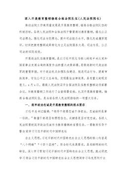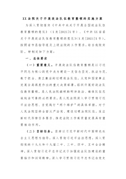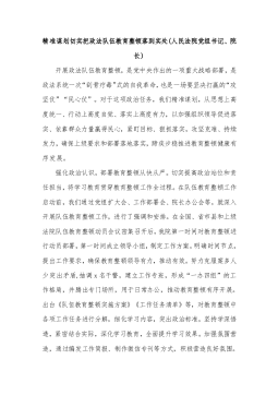 政法队伍教育整顿法院党组担纲“五个角色”(人民法院党组书记、院长)在“两个大局”交织、“两个一百年目标”交汇的新时期,党中央审时度势作出在全国政法系统开展队伍教育整顿工作的重大决定,开辟了一条锻造新时代法院铁军的新路径,各级法院党组要发扬彻底的革命精神,当好“五个角色”,以最高的政治站位、最严的工作纪律、最有力的举措抓好队伍教育整顿,努力打造一支党和人民信得过、靠得住、能放心的法院队伍。一要明方略,当好“领头雁”落实主体责任。开展政法队伍教育整顿,关键看领导,重中之重是要压实院党组主体责任,“一把手”要认真履行第一责任人职责,拧紧党组责任链条,构建齐抓共管的责任体系。党组一班人要旗帜鲜明讲政治...