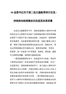 XX县委书记关于第二批主题教育研讨交流:持续推动检视整改 切实提高发展质量