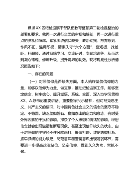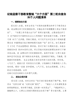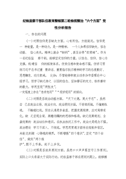 纪检监察干部队伍教育整顿第二轮检视整治六个方面党性分析报告两篇篇1根据*市纪检监察干部队伍教育整顿第二轮检视整治的部署和要求,我积累了第一轮教育整顿的经验,在学习交流、征求意见、交心谈心的基础上,及时总结提炼、对照剖析、分析研判。重点聚焦信仰缺失、政治动摇、放弃原则、作风不正、滥用职权、清廉失守“六个方面”,进行自查自纠,明确整改目标,有针对性地提出整改措施,全面进行党性分析,现将党性分析情况报告如下:一、存在的问题(一)对照信仰是否缺失方面。心有所信,方能致远。信仰是一种能量,是一种动力,是一种精神。一个人如果信仰缺失、信念动摇、信心丧失,精神上就会"缺钙”,甚至会得“软骨病"。作为一名纪检...