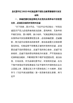 XX县纪委书记关于纪检监察干部队伍教育整顿研讨发言材料:以系统思维一体推进“三不腐”xxx总书记在二十届中央纪委二次全会重要讲话中强调,“必须深化标本兼治、系统治理,一体推进不敢腐、不能腐、不想腐……要把不敢腐、不能腐、不想腐有效贯通起来,三者同时发力、同向发力、综合发力。”一体推进“三不腐”是一项系统性工程,只有一体推进、系统施治,才能提升标本兼治综合效能,增强反腐败斗争的主动性、系统性、实效性。近期,按照纪检监察干部队伍教育整顿工作安排,县纪委监委干部全面系统学习了xxx总书记关于一体推进“三不腐”重要论述精神,通过学习,我感到,今年县纪委监委将认真学习贯彻落实xxx总书记重要讲话精神,增...