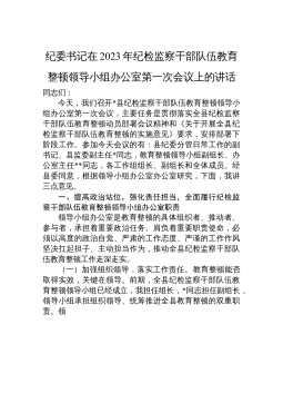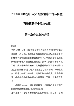 2023年XX纪委书记在纪检监察干部队伍教育整顿领导小组办公室第一次会议上的讲话