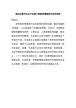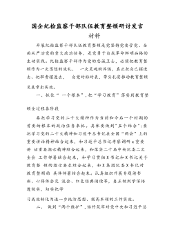 国企纪检监察干部队伍教育整顿研讨发言材料开展纪检监察干部队伍教育整顿是党坚持党要管党、全面从严治党的重大政治任务,是党勇于自我革命鲜明品格的生动实践。纪检监察干部作为党的忠诚卫士,必须把教育整顿作为一次思想的洗礼、一次灵魂的淬炼,真正把自己摆进去、把职责摆进去,自觉对标对表,带头扎实推动教育整顿见真章出实效。一、抓住“一个根本”,把“学习教育”落实到教育整顿全过程各阶段要把学习党的二十大精神作为当前和今后一个时期的首要的根本的政治任务来抓。具体要做到"五个结合":要把学习党的二十大精神和习近平总书记在全国“两会”上的重要讲话精神结合起来,和习近平总书记考察调研x重要讲话重要指示精神结合起来,和...