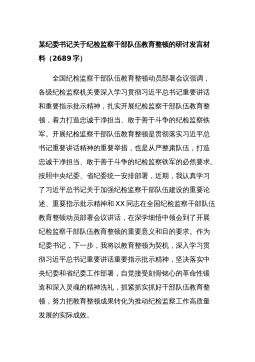 某纪委领导纪检监察干部队伍教育整顿工作进展情况汇报全国纪检监察干部队伍教育整顿工作开展以来,XX纪检监察工委认真贯彻落实中央、省、市纪委工作要求,紧贴我区纪检监察干部队伍现状和工作实际,扎实开展教育整顿工作,不折不扣抓落实,取得了一定成效。按照督导组工作安排,我代表XX纪检监察工委将我区教育整顿工作进展情况汇报如下。一、工作进展情况(一)高调安排部署,高标准启动开局。区纪检监察工委把纪检监察干部队伍教育整顿工作作为当前一项重大政治任务,作为拥护"两个确立",做到"两个维护"的具体实践,主动担责于身,履责于行,切实抓好各项工作落实。一是迅速召开会议,及时动员部署。X月X日,市纪检监察干部队伍教育...