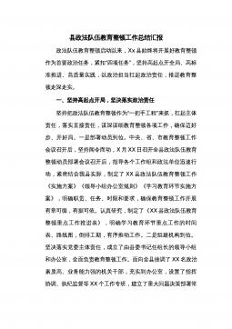 政法队伍教育整顿工作总结全市政法队伍教育整顿开展以来,X县司法局党组认真按照市、县政法委和市司法局的部署和要求,高度重视,成立了以党组书记为组长的教育整顿工作领导小组,制定了《X县司法行政队伍教育顿整工作方案》,并认真组织,抓好落实,队伍教育整顿取得初步成效,现将政法队伍教育整顿工作主要做法和取得成效报告如下。一、深化政治学习,突出正反典型教育1.强化政治理论学习。政法队伍教育整顿开展以来,局党组对政治理论学习进行了安排部署,制定了学习计划。党组理论中心组每月坚持开展学习,机关支部利用每月的党员学习议事日组织开展学习,集中学习了习近平总书记对政法工作的重要讲话和指示批示精神、《习近平关于政法工...