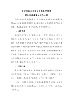 政法队伍教育整顿中央督导组反馈问题意见整改方案(2篇)篇一:按照市委政法委《关于转发《全国政法队伍教育整顿中央督导组抄告单〉的通知要求,为进一步提高政治站位、统一思想行动,主动对标对表,把中央督导组提出的意见建议不大折扣地落实到教育整顿全过程,纵深推进全县政法队伍教育整顿走深走实、取得实效,结合实际特制订如下整改方案。一、指导思想坚持以习近平新时代中国特色社会主义思想为指导,深入学习贯彻习近平法治思想,深入学习贯彻习近平总书记关于加强政法队伍建设的重要指示和训词精神,深入学习贯彻习近平总书记在党史学习教育动员大会上的重要讲话精神,深入学习贯彻习近平总书记考察云南重要讲话精神,坚持全面从严管党治...