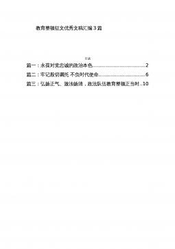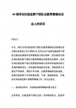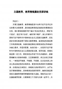 主题党课:扎实开展纪检监察干部队*育整顿着力打造忠诚干净担当、敢于善于斗争的纪检监察铁军同志们:根据各级统一部署,我县的纪检监察干部队*育整顿已于**日正式启动。刚才,我们一起观看了警示教育片《打铁必须自身硬》,*同志传达学习了*群涉政有害言论事件等警示教育通报,这些事例和案件给了我们深刻的警示,大家一定要从中吸取教训,认真对照检视,有则改之,无则加勉。按照《中共*县委员会关于开展全县纪检监察干部队*育整顿的实施意见》《*县纪委监委关于开展纪检监察干部队*育整顿的实施方案》安排,在学习教育环节,主要负责同志要带头讲主题党课、作廉政教育报告。下面,根据教育整顿领导小组办公室研究的意见,结合近期的...