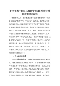 纪检监察干部教育整顿组织生活会“八个方面”个人对照检查材料