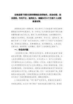 某纪委常委、监委委员纪检监察干部队伍教育整顿“六个方面”对照检查材料按照委机关纪检监察干部队伍教育整顿领导小组办公室统一部署安排,教育整顿以来,我认真学习习近平总书记关于加强纪检监察干部队伍建设、防治"灯下黑"的重要讲话和重要指示批示精神,积极参加委机关组织的集中学习研讨、主题党课和警示教育等活动,扎实开展调研座谈、谈心谈话、征求意见等工作。在此基础上,按照“检视整治"环节部署要求,重点围绕信仰缺失、政治动摇、放弃原则、作风不正、滥用职权、清廉失守"六个方面",坚持把自己摆进去、把事情摆进去、把问题摆进去,深入开展自查自纠、深刻检视查摆突出问题、全面剖析原因、周密制定整改措施及今后努力方向。现...