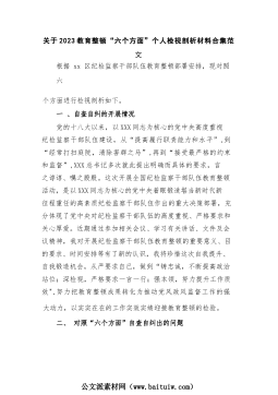 关于2023教育整顿“六个方面”个人检视剖析材料合集范文