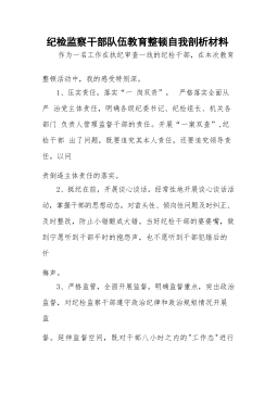 纪检监察干部队伍教育整顿自我剖析材料作为一名工作在执纪审查一线的纪检干部,在本次教育整顿活动中,我的感受特别深。1、压实责任,落实“一岗双责”。严格落实全面从严治党主体责任,明确各级纪委书记、纪检组长、机关各部门负责人管理监督干部的责任。开展“一案双查”,纪检干部出了问题,既要追究其本人责任,还要追究领导责任,以问责倒逼主体责任的落实。2、挺纪在前,开展谈心谈话。经常性地开展谈心谈话活动,掌握干部的思想动态,对苗头性、倾向性问题及时纠正、及时整改,防止小错酿成大错。当好纪检干部的婆婆嘴,做到宁愿听到干部平时的抱怨声,也不愿听到干部犯错后的忏悔声。3、严格监管,全面开展监督。明确监督重点,突出政...