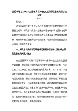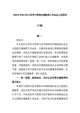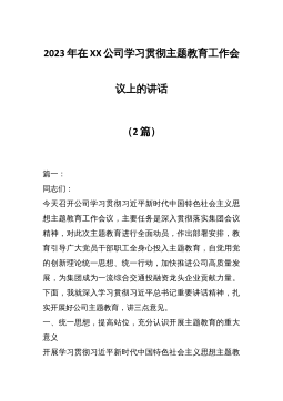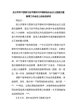 在公司学习贯彻习近平新时代中国特色社会主义思想主题教育工作会议上的动员讲话同志们:深入开展学习贯彻习近平新时代中国特色社会主义思想主题教育,是以习近平同志为核心的党中央全面贯彻党的二十大精神、动员全党同志为完成党的中心任务而团结奋斗所作的重大部署,是深入推进新时代党的建设新的伟大工程的重大部署。经省委第**指导组同意,**今天召开学习贯彻习近平新时代中国特色社会主义思想主题教育工作会议,主要任务是深入学习贯彻习近平总书记在学习贯彻习近平新时代中国特色社会主义思想主题教育工作会议上的重要讲话精神,对**开展学习贯彻习近平新时代中国特色社会主义思想主题教育进行动员部署,教育引导广大党员、干部全身心...