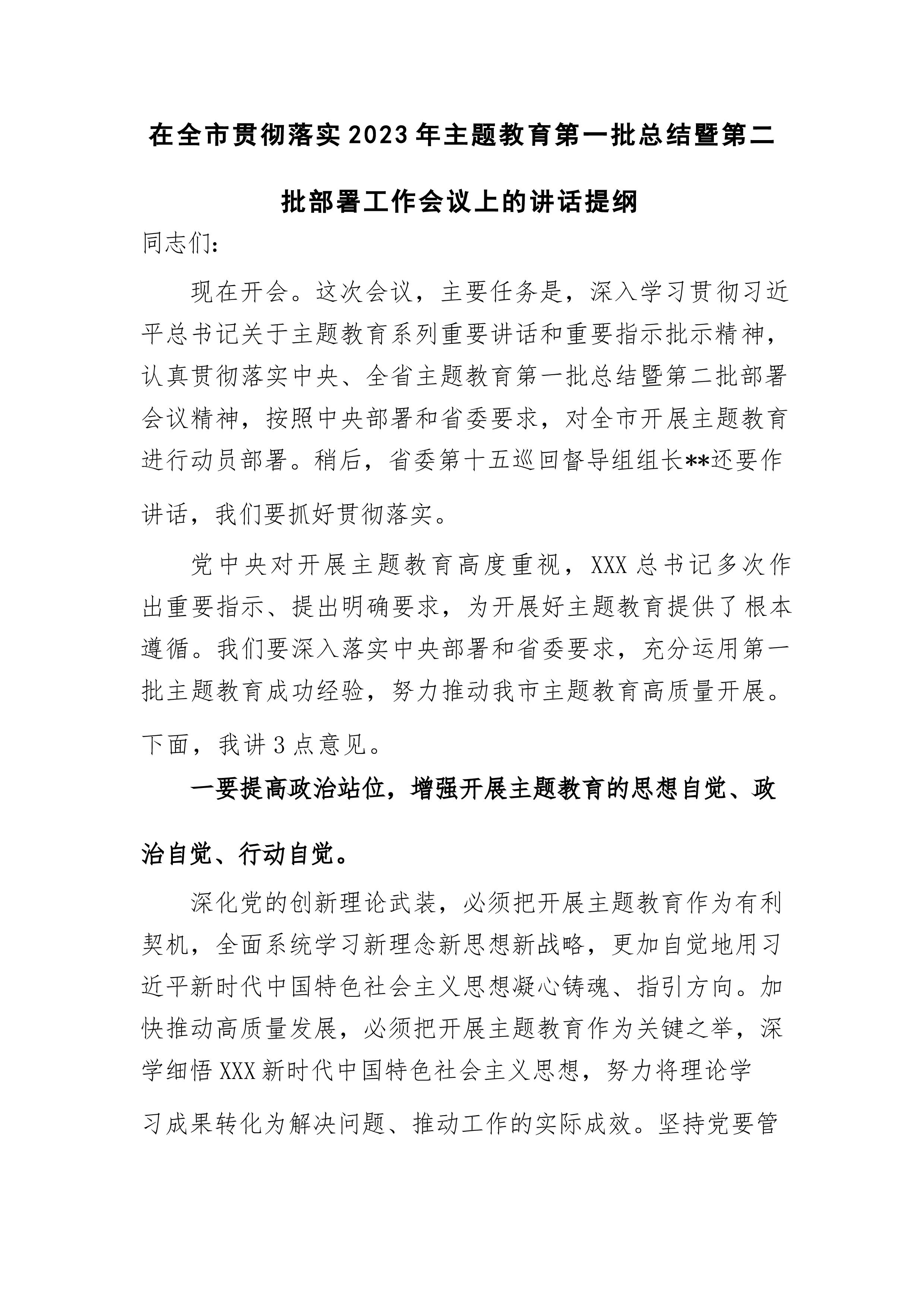 在全市学习贯彻2023年第二批主题教育工作会议上的讲话提纲发言材料