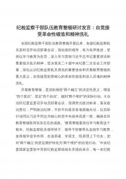 纪检监察干部队伍教育整顿研讨发言:扎实发扬自我革命精神锻造纪检监察铁军