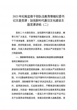 2023年纪检监察干部队伍教育整顿纪委书记主题党课:加强新时代廉洁文化建设主题党课讲稿(二)