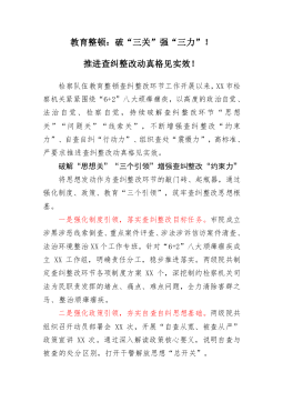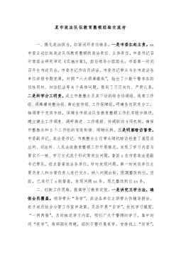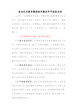 政法委和公安分局政法队伍教育整顿查纠整改环节整治成果公告展示2篇政法委政法队伍教育整顿查纠整改环节整治成果公示1政法队伍教育整顿进入第二环节以来,XX县委政法委按照县政法队伍教育整顿领导小组办公室要求,强化组织,压实责任,对照“五看”标准,压茬推进自查自纠、组织查处、专项整治工作,取得了积极成果。现将整治成果予以公示:一、自查自纠情况一是全面发动。组织学习《中国共产党纪律处分条例》《中国共产党廉洁自律准则》等党纪法规,先后4次传达学习“自查从宽,被查从严”相关政策,通过学习引导、警示教育、会议动员等方式,将学习教育转化为自查自纠的内在动力。二是全体谈话。把谈心谈话作为打开干部心结的重要举措。按...