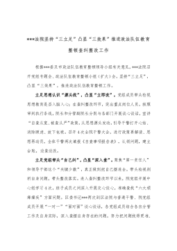 政法队伍教育整顿法院党组担纲“五个角色”(人民法院党组书记、院长)在“两个大局”交织、“两个一百年目标”交汇的新时期,党中央审时度势作出在全国政法系统开展队伍教育整顿工作的重大决定,开辟了一条锻造新时代法院铁军的新路径,各级法院党组要发扬彻底的革命精神,当好“五个角色”,以最高的政治站位、最严的工作纪律、最有力的举措抓好队伍教育整顿,努力打造一支党和人民信得过、靠得住、能放心的法院队伍。一要明方略,当好“领头雁”落实主体责任。开展政法队伍教育整顿,关键看领导,重中之重是要压实院党组主体责任,“一把手”要认真履行第一责任人职责,拧紧党组责任链条,构建齐抓共管的责任体系。党组一班人要旗帜鲜明讲政治...