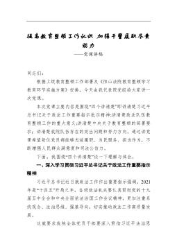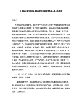 领导干部在全县教育整顿第二阶段查纠整改环节动员部署会议上的讲话同志们:今天,我们召开全县政法队伍教育整顿第二阶段查纠整改环节部署会,主要任务是贯彻落实中央、省、市第一批政法队伍教育整顿工作推进会精神,认真总结XX县政法队伍教育整顿学习教育期间的经验做法,查找不足,重点教育整顿没有突破的案件线索、没有完成的顽瘴痼疾整治任务,将延伸至第二批持续推进,确保查处到位、整治彻底、不留问题尾巴,安排部署查纠整改环节重点工作,推动全县教育整顿深入开展。可以说这次会议既是教育整顿工作的“转段会”也是“推进会”和“部署会”。围绕这次会议主题,我将三点意见:一、充分肯定政法队伍教育整顿学习教育阶段的取得的阶段性成...