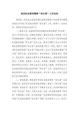 教育整顿总结大会暨“回头看”动员大会讲话及阶段性总结汇报(2篇)篇一:教育整顿总结大会暨“回头看”动员大会讲话同志们:时间不知不觉来到这里6月末。我县教育整顿工作按照国家、省、市教育整顿工作部署要求,按期完成相关活动环节。近日,全国政法队伍教育整顿领导小组召开第三次会议。会议透露,在第一批教育整顿收尾阶段,各省级教育整顿领导小组将随即部署开展“回头看”中央督导组对“回头看”进行“点穴式”督导。下一步市督导组很有可能来我县检查督导工作。这对我县教育整顿工作是个考验,我们的答题能否让考官满意。不打无准备之仗,就是要赶督导之前,我们自己先进行一次回头看,查缺补漏,尽最大地可能做好督导准备。为做好我县...