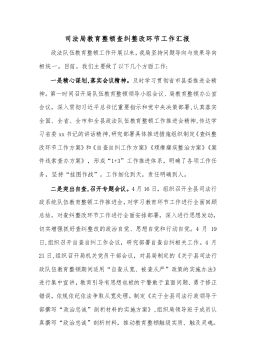 司法局教育整顿查纠整改环节工作汇报政法队伍教育整顿工作开展以来,我局坚持问题导向与效果导向相统一。目前,我们主要做了以下几个方面工作:一是精心谋划,落实会议精神。及时学习贯彻省市县委推进会精神。第一时间召开局队伍教育整顿领导小组会议、局教育整顿办公室会议,深入贯彻习近平总书记重要指示和党中央决策部署,认真落实全国、全省、全市和全县政法队伍教育整顿工作推进会精神,传达学习省委xx书记的讲话精神,研究部署具体推进措施组织制定《查纠整改环节工作方案》和《自查自纠工作方案》《顽瘴痼疾整治方案》《案件线索查办方案》,形成“1+3”工作推进体系,明确了各项工作任务,坚持“挂图作战”,工作细化到天,责任明确...