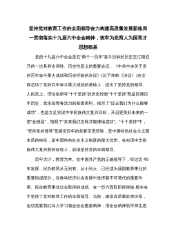 坚持党对教育工作的全面领导奋力构建高质量发展新格局一贯彻落实十九届六中全会精神,筑牢为党育人为国育才思想根基