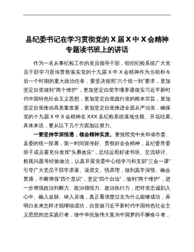 今天我们在这里组织党的十九届六中全会专题学习培训班结业仪式,刚刚县委组织部X部长对此次专题培训班进行了很好的总结,我都同意,十九届六中全会通过第三个历史决议,深刻总结凝练了党百年奋斗的经验,为我们向第二个百年目标奋进指明了方向,蓝图已经描绘,现在就是要靠钉钉子的精神去抓落实,专题学习侧重理论武装头脑,最终目标还是要落实在具体行动上。在这里,我就如何贯彻落实党的十九届六中全会精神,围绕如何增强贯彻执行党的路线方针政策的自觉性和坚定性、进一步提高履职尽责能力,聚焦“增强使命担当,争创一流业绩”这一主题,给大家做个交流:一是永做政治合格的“明白人”。要旗帜鲜明讲政治,把学习贯彻XJP新时代社会主义思...