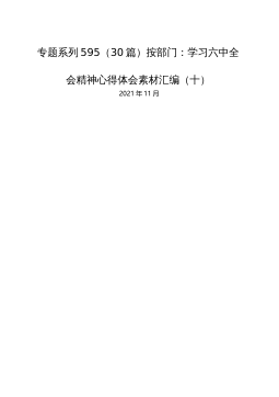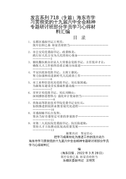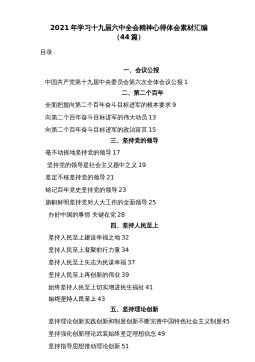 十九届六中全会精神知识竞赛不忘初心跟党走同心共筑中国梦XXX开展党的十九届六中全会知识竞赛1、党的最高领导机关,是_______和_______答案:党的全国代表大会、它所产生的中央委员会2、“中央全会”的全称是_______答案:党的中央委员会全体会议XXX开展党的十九届六中全会知识竞赛3、中央委员会全体会议由_______召集,每年至少举行一次。答案:中央政治局4、中央政治局向_______报告工作,接受监督。答案:中央委员会全体会议5、十九届六中全会的全称是_______答案:中国共产党第十九届中央委员会第六次全体会议XXX开展党的十九届六中全会知识竞赛6、中共中央政治局2021年8月3...