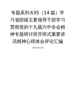(14篇)学习省部级主要领导干部学习贯彻党的十九届六中全会精神专题研讨班开班式重要讲话精神心得体会评论汇编