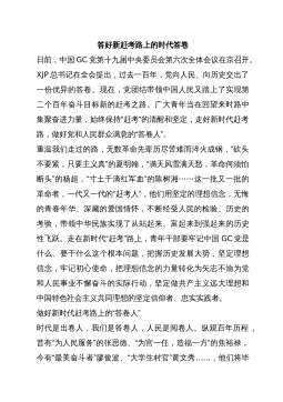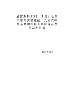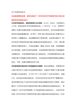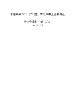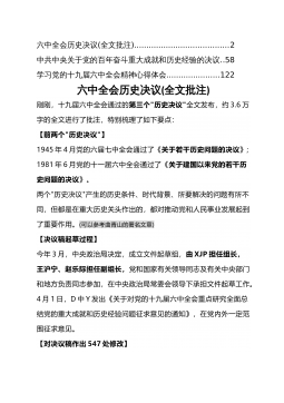 《决议》心得体会..................................2在学习贯彻全会精神动员部署会上的讲话在全会精神学习研讨会上的发言材料(一)在全会精神学习研讨会上的发言材料(二)学习党的十九届六中全会精神心得体会、党课讲稿XX公司党委关于认真学习宣传贯彻党的十九届六中全会精神的通知从百年党史中汲取奋斗力量不断埋头苦干勇毅前行——学习党的十九届六中全会精神心得体会下一步打算:二是汲取历史经验,提升能力素养。当前,世界百年未有之大变局和新冠肺炎疫情全球大流行交织影响,外部环境更趋复杂严峻,国内新冠肺炎疫情防控和经济社会发展各项任务极为繁重艰巨。正如XJP总书记指出的,我们处在前...