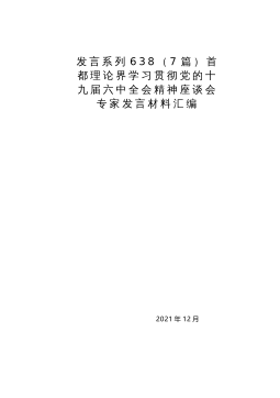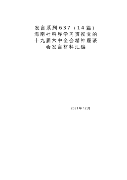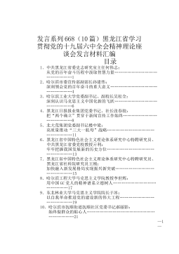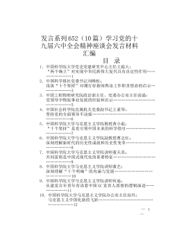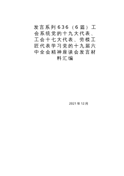 发言系列636(6篇)工会系统党的十九大代表、工会十七大代表、劳模工匠代表学习党的十九届六中全会精神座谈会发言材料汇编2021年12月目录1.中共十九大代表李萌:传承时传祥精神谱写新时代华章………………………………………………12.中国工会十七大代表王映民:拼搏进取自主创新把关键核心技术掌握在自己手里…………………………33.全国劳动模范尹星:以“有我”之担当追求“无我”之境界………………………………………54.全国劳动模范李远伟:生命至上安全第一以牺牲奉献诠释忠诚与担当………………………………75.全国劳动模范张义标:当好首都“小蜜蜂”展现新就业形态劳动者风采……………………………96.大国...