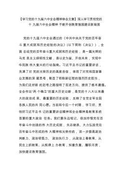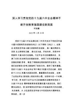 【学习党的十九届六中全会精神体会文章】深入学习贯彻党的十九届六中全会精神 不断开创教育强国建设新局面