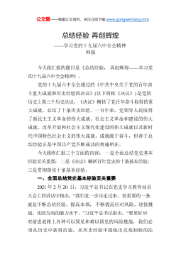 【学习党的十九届六中全会精神体会文章】深入学习贯彻党的十九届六中全会精神不断开创教育强国建设新局面党的十九届六中全会通过的《中共中央关于党的百年奋斗重大成就和历史经验的决议》(以下简称《决议》),全面总结党的百年奋斗重大成就和历史经验,是一篇光辉的马克思主义纲领性文献,是以史为鉴、开创未来,实现中华民族伟大复兴的行动指南。习近平总书记的重要讲话,充满了对党的光荣历史的高度自信,体现了对党和国家事业发展的深邃思考,彰显了领航新征程的强烈历史担当,为我们走好新的赶考之路指明了前进方向、提供了根本遵循。全会作出“两个确立”的重大历史论断,是党的十八大以来最大的政治成果、最重要的历史经验,反映了全党全...