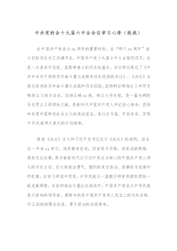 乡镇党委班子成员中心组学习十九届六中全会精神心得研讨发言