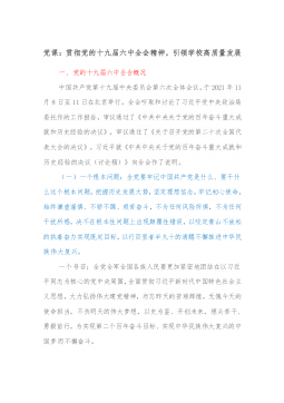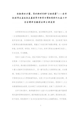 乡镇党委班子成员中心组学习十九届六中全会精神心得研讨发言11月8日至11日,中国共产党第十九届中央委员会第六次全体会议胜利召开。全会听取和讨论了习近平总书记受中央政治局委托作的工作报告,审议通过了《中共中央关于党的百年奋斗重大成就和历史经验的决议》《关于召开党的第二十次全国代表大会的决议》,全面回顾了我们党走过的百年光辉历程,用“三个需要”指出了总结百年党史的必要性和重要性,开创性地提出了“两个确立”,凝练提出我们党百年奋斗的“五大历史意义”,深刻揭示百年来我们党积累的“十条宝贵经验”,吹响了全面建设社会主义现代化国家的冲锋号角,为全党全国各族人民向着第二个百年奋斗目标前进进提供了行动指南。通...