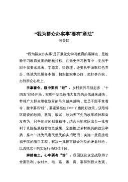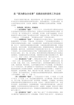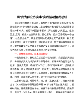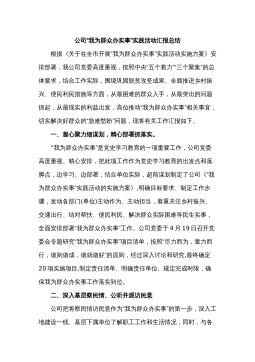 “我为群众办实事”实践活动情况汇报及教育实践活动方案(2篇)目录:篇一:“我为群众办实事”实践活动情况汇报篇二:“我为群众办实事”教育实践活动方案篇一:“我为群众办实事”实践活动情况汇报一、找准“落脚点”,办好群众“急事”。二、理清“连接线”,解决群众“难事”。三、拓宽“服务面”,做好群众“小事”。xx学习教育开展以来,xx县坚持“切口小、发力准、见效快”的原则(思路),聚焦群众“急难愁盼”问题,坚持“点线面”同步发力、“急难小”一体推进(措施),推动“我为群众办实事”实践活动扎实开展,让人民群众见到新气象、更有获得感(开头引言非常精炼,既有思路又有措施更有结果)。一、找准“落脚点”,办好群众...