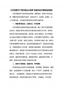 公司党委关于“我为群众办实事实践活动开展情况的报告