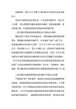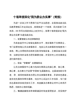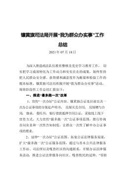 “我为群众办实事”实践活动开展情况报告县教整办:为进一步密切人民法院和群众的血肉联系,做好法院队伍教育整顿和党史学习教育工作,全面增强干警的宗旨意识、责任意识、服务意识和群众观念,树牢为民办实事理念,深入开展“我为群众办实事”实践活动并贯穿教育整顿全过程。现将工作开展情况汇报如下。一、总体情况结合法院实际,研究制定《xxx县人民法院“我为群众办实事”实践活动方案》,以队伍教育整顿为契机,不断提升为民服务、为民办事实效。认真梳理当前、中期、长期“我为群众办实事”实践活动具体事项、具体内容,列出本单位、领导班子成员、党员个人的“我为群众办实事”任务清单,努力为人民群众做好事、办实事、解难事。开展了...