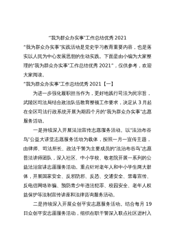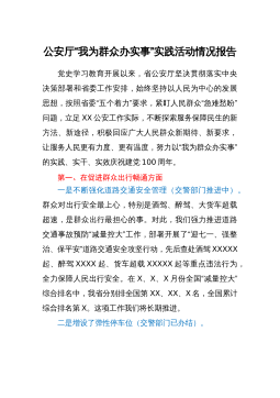 2021年关于法院开展“我为群众办实事”专题汇报材料范文2021年关于法院开展“我为群众办实事”专题汇报材料范文自政法队伍教育整顿活动开展以来,xx法院紧紧围绕省市区委统一部署,在全院范围内广泛开展“我为群众办实事”实践活动,努力为人民群众做好事、办实事、解难事,着力解决人民群众最关心、最直接、最现实的问题,各庭室、各部门干警积极行动,提升诉讼服务质量,落实司法为民、便民、惠民各项措施。现将“我为群众办实事”实践活动开展情况汇报如下: 一、具体做法和成效 一是开展学习教育,夯实广大干警为群众办实事理念。xx法院结合党史学习教育活动,通过开展集中学习、个人自学等多种方式,让广大干警从思想上牢...