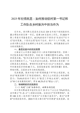 2025年社情民意:如何推动驻村第一书记和工作队在乡村振兴中担当作为