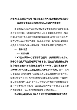 关于XX县主城区中心地下停车场项目和XX县乡村振兴城乡融合发展农贸市场项目未按计划开工问题的调查报告