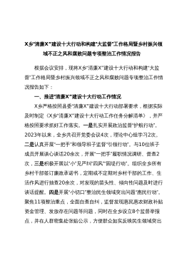 X乡“清廉X”建设十大行动和构建“大监督”工作格局暨乡村振兴领域不正之风和腐败问题专项整治工作情况报告